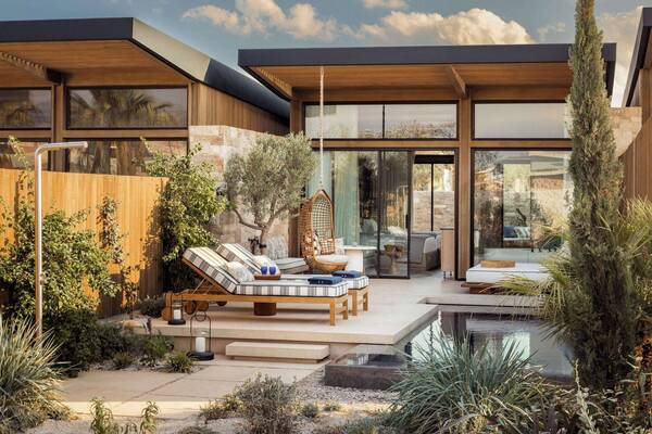 Designed to maximise this coveted coastal location, each mid-century-style villa features panoramic sea views through full-length windows and glass doors. Two bedrooms – one with a king bed, the second with two twin beds – lead to dressing rooms and marble-lined ensuites with deep soaking tubs. A full gourmet kitchen, bar, laundry and living room offer the luxurious comforts of a private home.Lowest rate